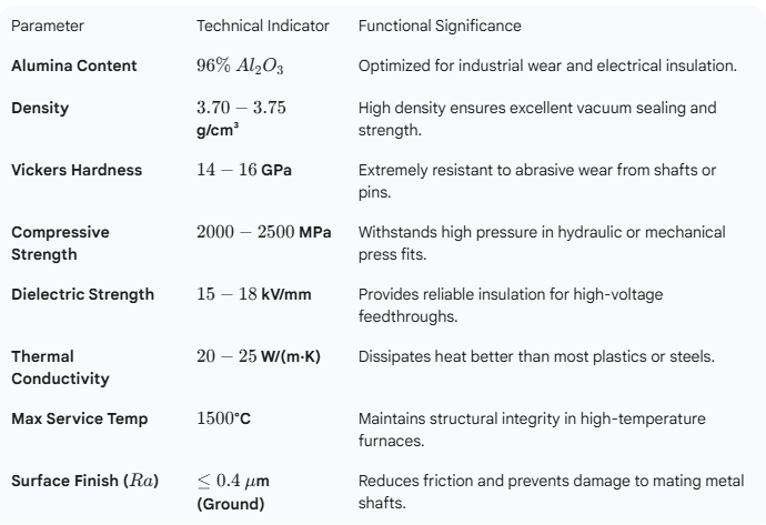 The 96% Alumina Ceramic Sleeve is the ideal industrial solution for balancing high performance with budget efficiency. Known for its versatile physical properties, the 96% grade offers a denser microstructure and better dielectric properties than lower alumina grades, while being easier to manufacture into complex shapes than 99% alumina. These sleeves provide a rugged, wear-resistant surface that protects internal shafts and components from harsh environments, high friction, and electrical leakage. Whether used in a mechanical seal assembly or as an insulating bushing in an industrial furnace, our 96 alumina sleeves deliver consistent reliability for long-term operations.