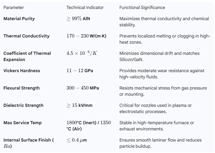 The Aluminum Nitride Ceramic Nozzle is engineered for extreme high-temperature and corrosive environments. Manufactured from high-purity aluminum nitride, this nozzle excels in applications requiring superior thermal management and precise fluid control while maintaining structural integrity under demanding conditions.