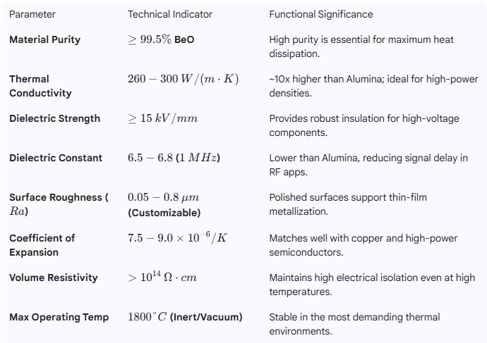 Custom Beryllium Oxide Ceramic Plate Substrates are tailored solutions designed for specialized applications requiring specific dimensional and performance characteristics. Engineered from high-purity beryllium oxide ceramic, these custom substrates provide optimal thermal management and electrical insulation for unique application requirements.
