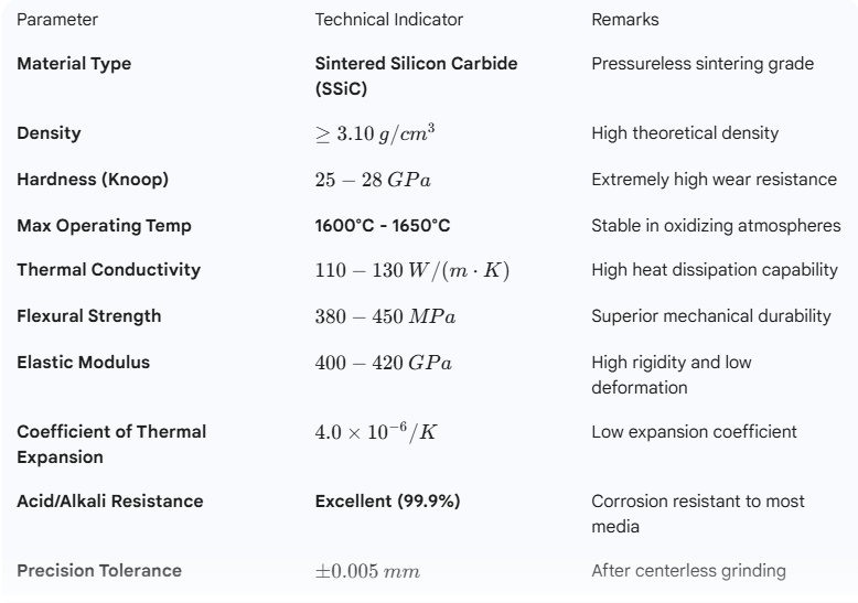 Engineering-grade silicon carbide precision ceramic rods are designed for demanding industrial applications requiring high hardness wear resistance and thermal stability, the material maintains excellent dimensional accuracy and structural integrity under extreme mechanical thermal and chemical conditions, making it suitable for long-term stable operation in harsh environments
