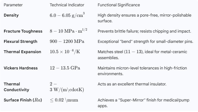 Processing Flow: Nano-grade Zirconia powder preparation → Isostatic pressing or Ceramic Injection Molding (CIM) → High-temperature sintering (1450°C - 1550°C) → Precision diamond cylindrical grinding → Step-by-step mirror polishing → Ultrasonic flaw detection → CMM dimensional inspection → Secure packaging.
