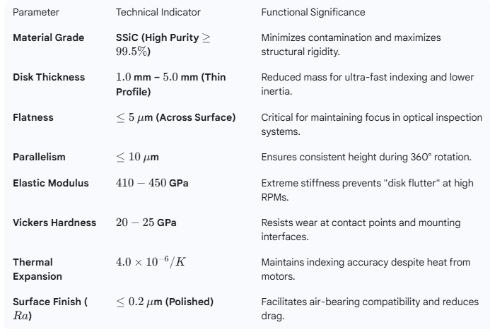 The High-purity Thin Silicon Carbide Ceramic Indexing Disk is an advanced ceramic component engineered for high-precision positioning and indexing in semiconductor and precision manufacturing equipment. Manufactured from high-purity silicon carbide, this disk delivers exceptional dimensional stability, thermal resistance, and mechanical durability under extreme operating conditions. The combination of ultra-precise geometry and superior material properties ensures reliable performance in demanding industrial applications where accuracy and longevity are critical.