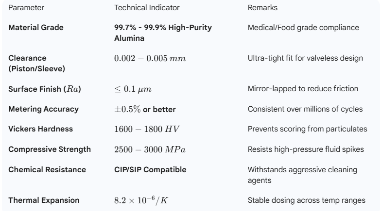 High-Purity Alumina Ceramic (Al₂O₃ 99.5%-99.8%). For key friction pairs or impact-prone components such as valve seats and cores, Zirconia Toughened Alumina (ZTA) composite reinforcement can be employed.