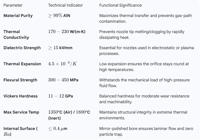 Aluminum nitride nozzles are precision-engineered components designed for extreme high-temperature and corrosive environments. These nozzles leverage the superior thermal and electrical properties of aluminum nitride to ensure reliable performance in demanding applications such as semiconductor processing and industrial thermal spraying.
